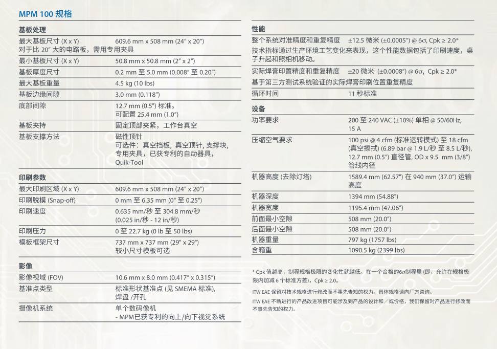 摄像机桁架互不相关,提供杰出的运行稳定性,装配时间更短,基板和模板对准更快。CAN 控制驱动结构支持更快的工艺速度和随之而来的从整体上减少布线,减少平均修复时间(MTTR) 。 MPM 100 的刚硬框架,低振动,提供长久的较高可重 复性和高可靠