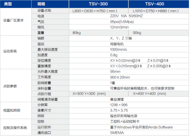安达点胶机TSV-300 / TSV-400高速点胶机