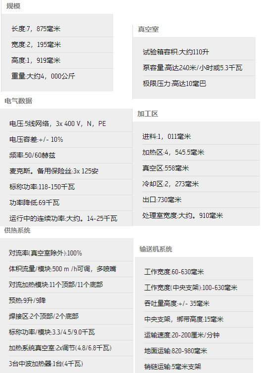 • 四部分输送机(进料、预热和峰值、真空、冷却区)也作为双轨