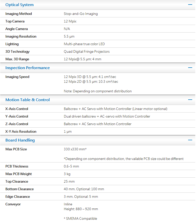 • Ultra-High Precision Stop-and-Go 3D AOI